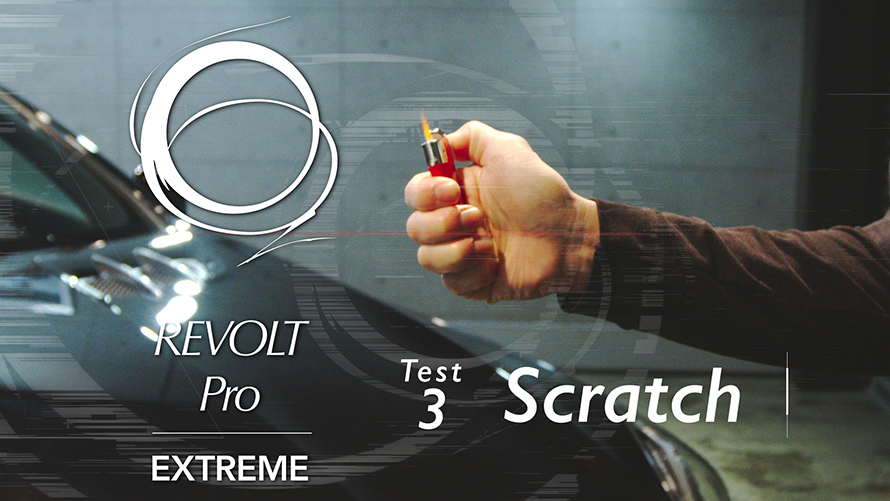 ◆リボルトプロ・エクストリームは低分子型の完全硬化型被膜を形成します。世の中には硬度9Hなどをうたっていても、実際には粉になったり蒸発したりジェル状になったりと完全硬化をしないコーティング剤が多々存在します。ほぼ全てのお客様はコーティング被膜は完全硬化すると思っていらっしゃいますので、それを証明するため完全硬化の検証を行いました。コーティング剤を小さなカップに注ぎ、数日後にカップから取り出してみると、しっかりと完全硬化している事を確認できました。この完全硬化したコーティング被膜が未施工部分と比較するとキズや汚れが付きにくい状態を作り出します。ちなみに被膜の硬度は8Hです。ボディ表面のたわみにも追従し、ヒビ割れクラックを防ぐ、硬さ・しなやかさの両方を備えた理想的な硬度となります。